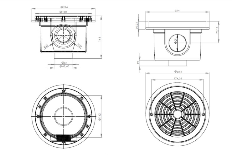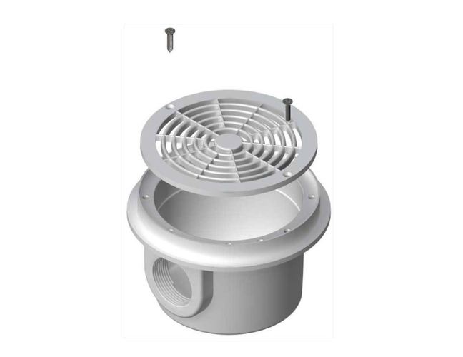 Донний злив зі вставною кришкою арт.PG-04141T2 круглої форми для бетонних басейнів. Решітка фіксується гвинтами з нержавіючої сталі.