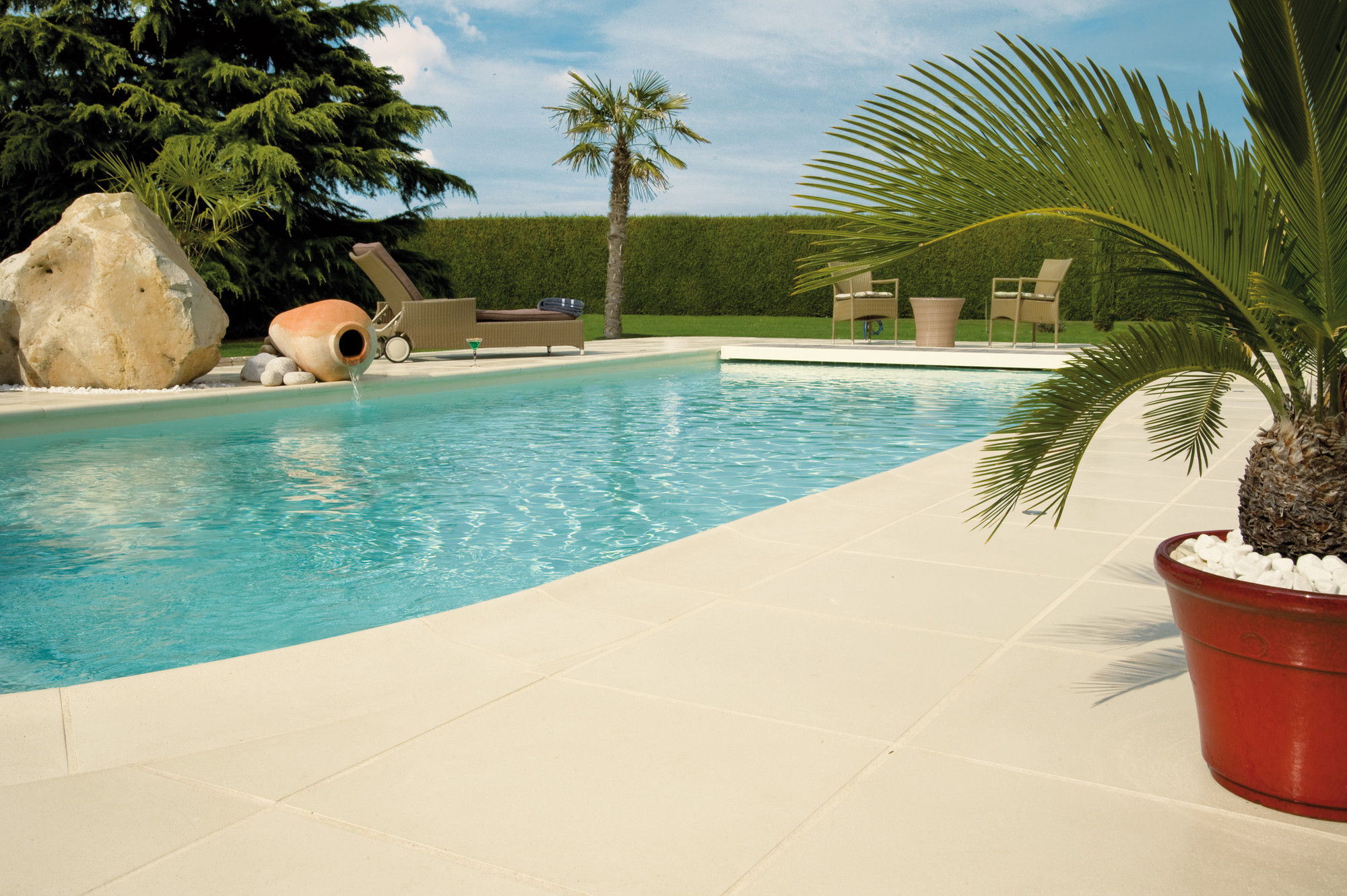 Для облицювання басейну пропонуємо розглянути серію Rustique bullee бортового каменю Pierra, представлену в 4 видах:
