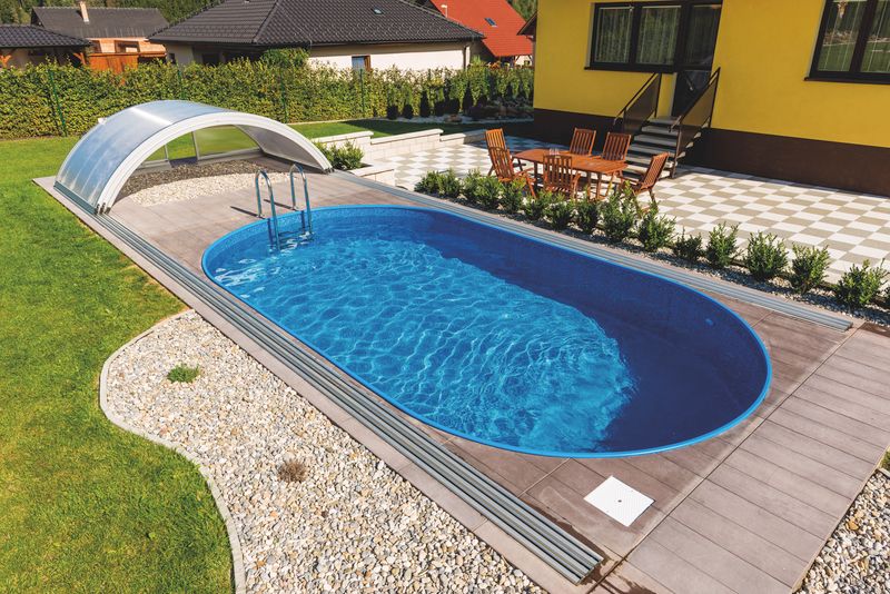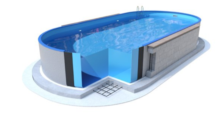 каркас басейну збирається з оцинкованих посилених сталевих листів з високим рівнем захисту від корозії; - нижні пластикові напрямні (білого кольору) для формування овального контура;