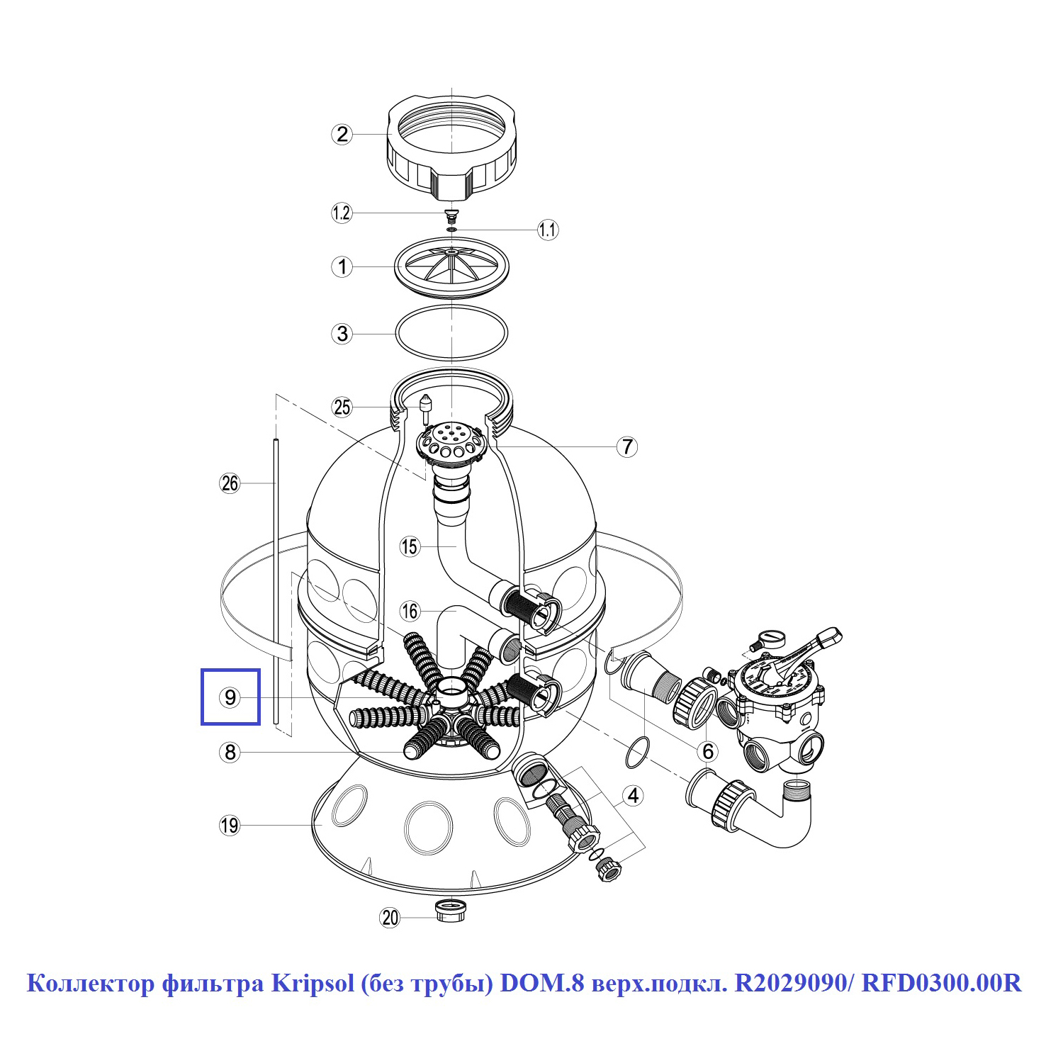 Колектор фільтра Kripsol (без труби) DOM.8 верх. підкл. R2029090/RFD0300.00R 15887