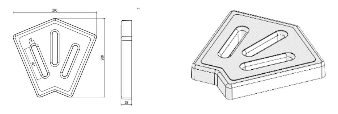 Кут 45 для переливної решітки 25 см, товщиною 25 мм.