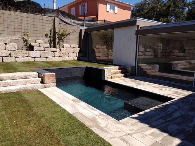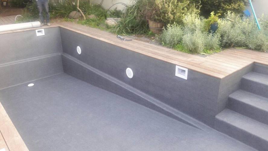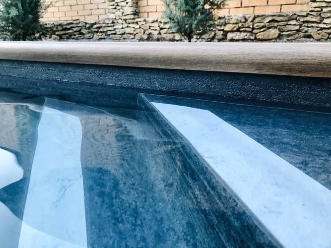 Армований лайнер StoneFlex базальт Bazelet - преміум плівка для облицювання басейну, має покращені властивості лакового покриття та підвищену прочність до деформації. Її незвична рельєфна фактура нагадує кам'яну поверхню, глибокий сірий колір Bazelet підкреслить індивідуальність інтер'єру або ландшафтного дизайну.