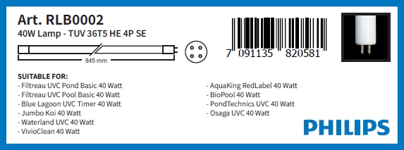 УФ лампа Philips 40 Вт змінна для Pool Basic RLB0002