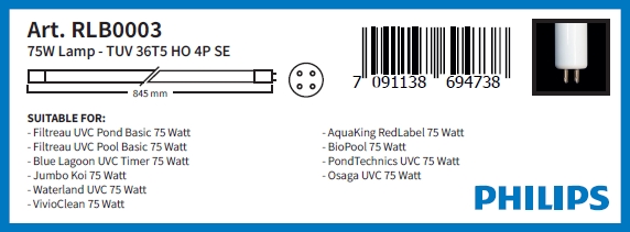 УФ лампа Philips 75 Вт змінна для Pool Basic RLB0003
