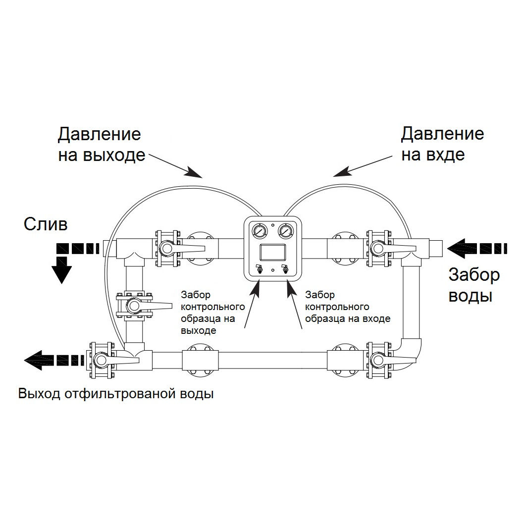 Складається з двох гліцеринових манометрів з рамою з нержавіючої сталі, діаметром 63 мм, і краниками для забору контрольних зразків.