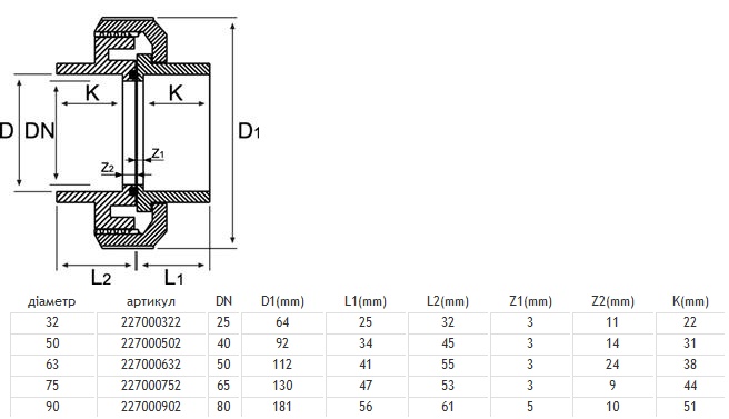 Муфта роз'ємна призначена для з'єднання двох нерухомих елементів трубопроводу.