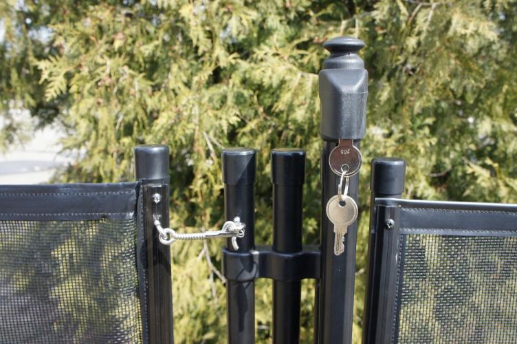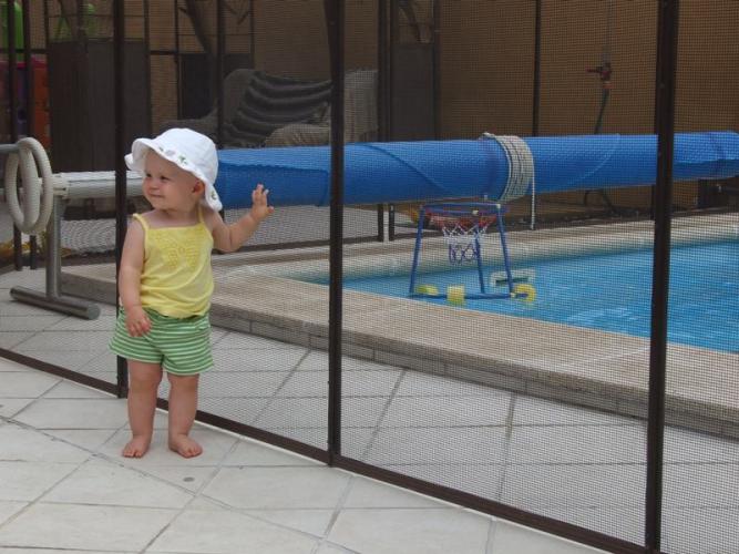 Конструкція огорожі Baby Shield - повністю виключає можливість попадання в воду басейну дітей та домашніх тварин. Це міцна щільна скловолокниста сітчаста тканина (шириною 0,90 м), закріплена до стійок.