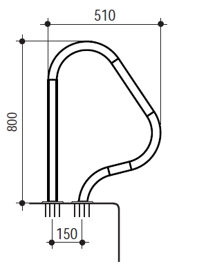 Поручні для басейну розміром 510х800 мм виготовлені з труби з нержавіючої сталі AISI 304 діаметр труби 42 мм.