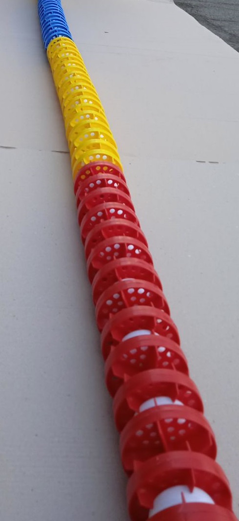 Розмежувальна доріжка PG, синьо-жовто-червоного кольору, виконує функцію розмітки поверхні води.