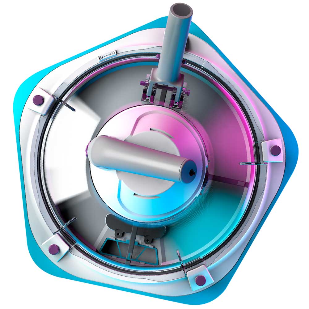 Має широку основу з щітками для очищення великої площі дна.