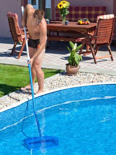 Сачок Mountfield арт. 3BVZ0048 з посиленою пластиковою рамою і глибокої дрібною сіткою для збирання сміття з дна басейну.