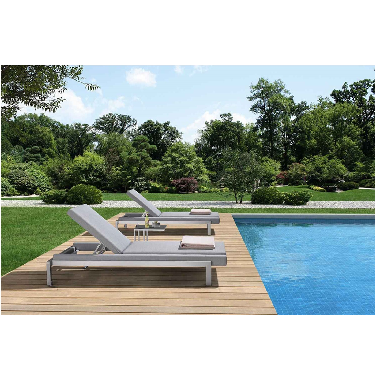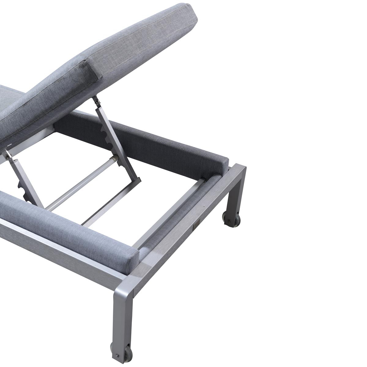 Конструкція з обшивкою і подушками забезпечить максимально комфортний відпочинок і подарує відчуття затишку. Регульована спинка встановлюється у 5 різних положеннях, не обмежуючи положення тіла. Каркас шезлонга виконаний з посиленого алюмінію. М'яка оббивка з текстилю та олефина стійка до впливу негативних природних факторів: не вигоряє, не мажеться і не вбирає вологу.