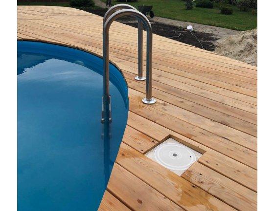 Гумові накладки на сходах зменшують ковзання, забезпечуючи безпечний вхід/вихід з басейну.Висота від нижнього краю сходів до борта: 1150 ммШирина: 500 мм