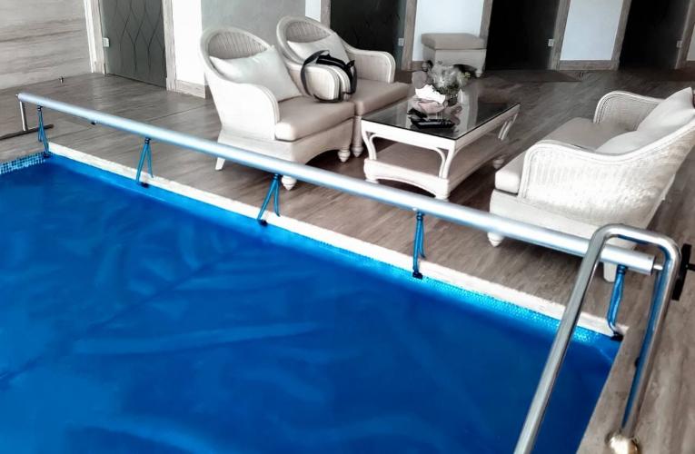 Мобільний намотувальний пристрій для солярної плівки T-Basic призначений для басейнів шириною до 5 метрів і довжиною до 11 метрів.