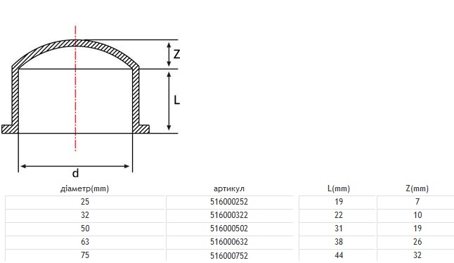 Заглушка зовнішня 25мм, PN16, Pimtas 516000252