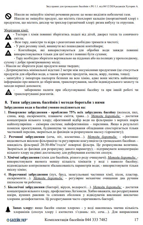 - Рекомендації британської Консультативної групи з очищення води в басейнах PWTAG – The Pool Water Treatment Advisory Group, липень 2021р;